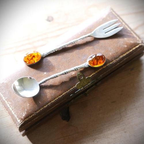 Vintage Silver Caviar Service with Baltic Amber Terminals