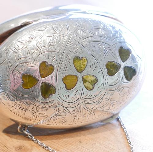 Edwardian Silver Egg Shape Purse with Connemara Shamrocks