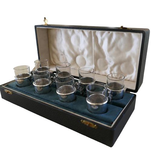 Antique Set of 8 Liqueur Glasses & Silver Holders