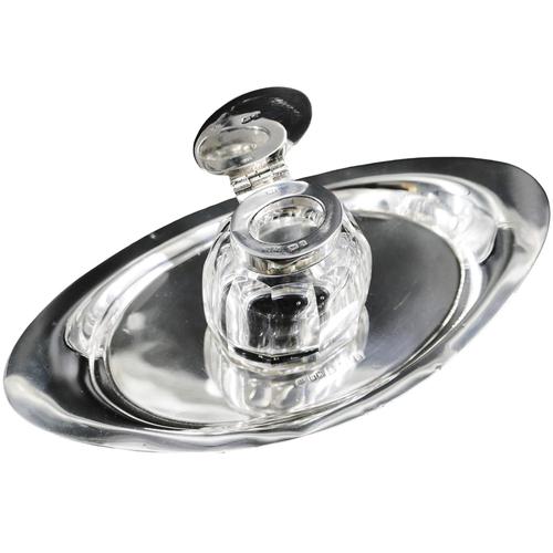 Silver and Glass Inkwell + Stand - Birmingham 1900 by Henry Matthews