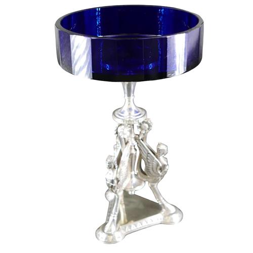Art Deco Egyptian Revival Comport in Blue Glass & Silver Plate