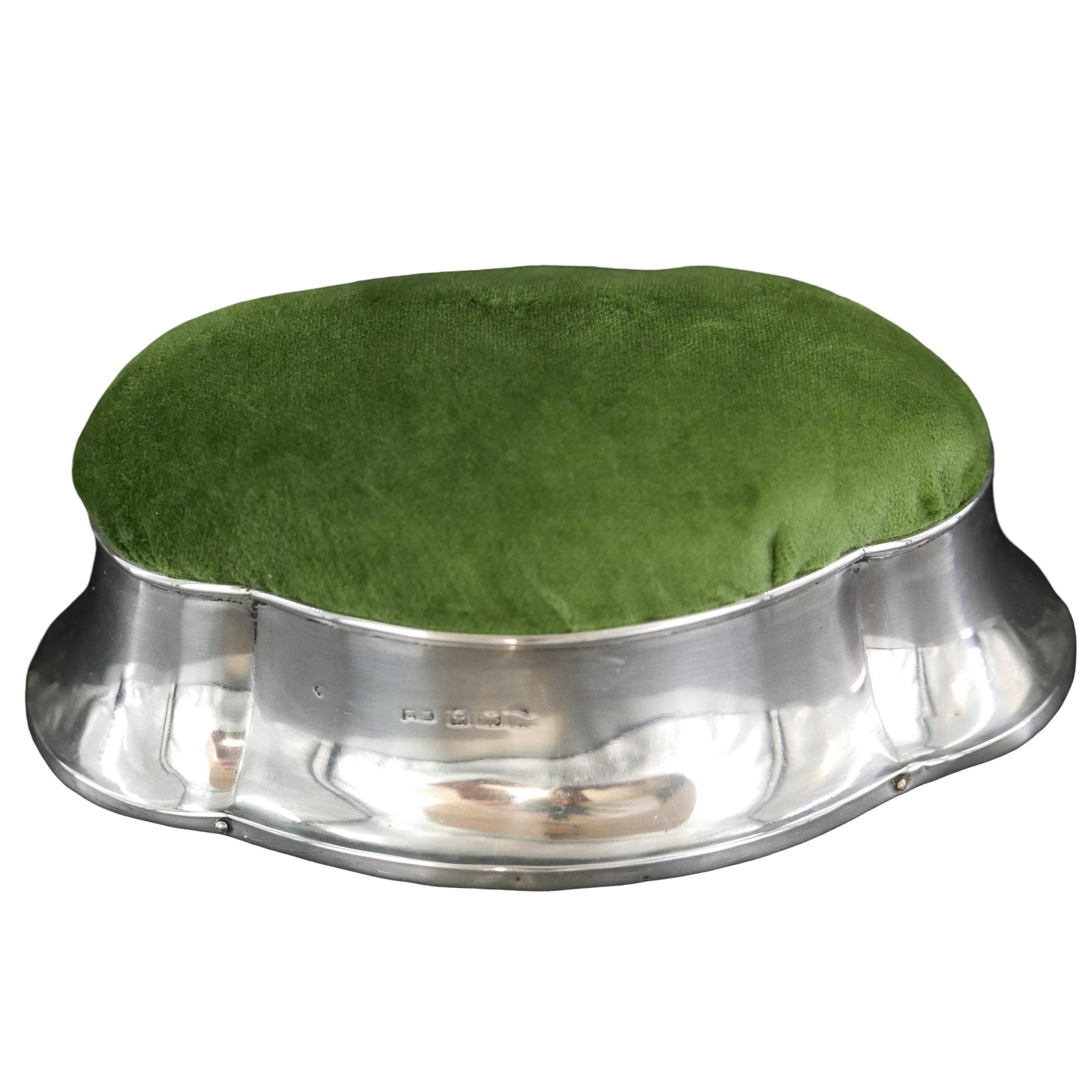 A good condition pin cushion/hatpin holder in very good condition, just light surface scratches commensurate with age and use. Hallmarks rubbed but discernible.