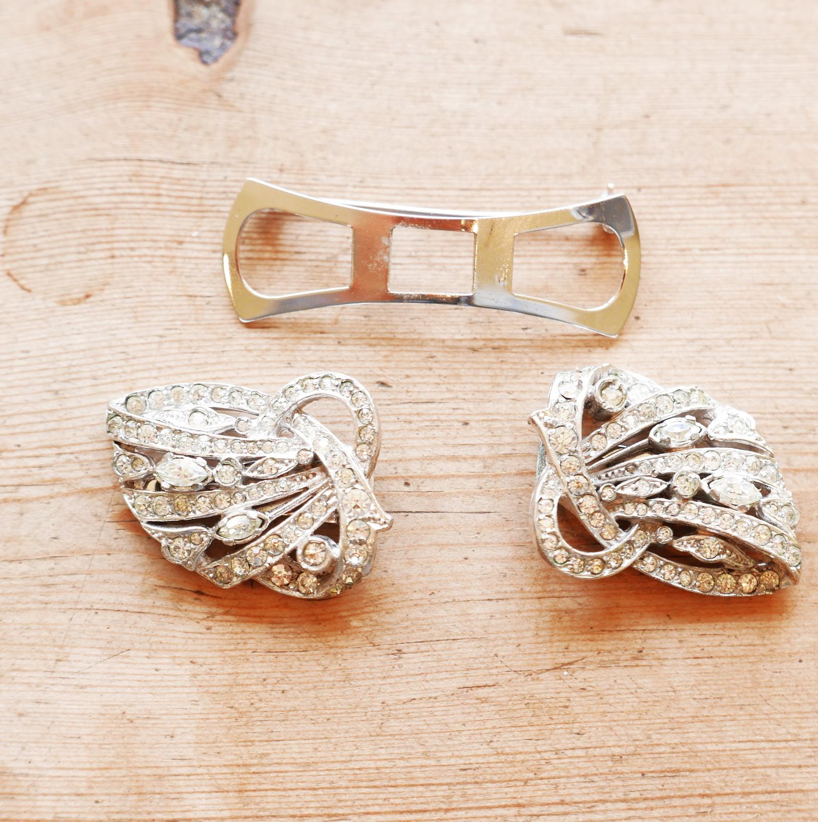 Here we have a lovely piece of mid-century dress jewellery from the revered company 'Nymph'. This particular two piece dress clip was used widely, becoming essential in transforming a relatively sober dress into a "is it? "or isn't" gown, with the wearer becoming the envy of many other women. Well regarded by new mid-market retailer's, Nymph soon established a prominent position in many high streets, bringing out new designs and advertising pieces, to keep the brand in the public eye.