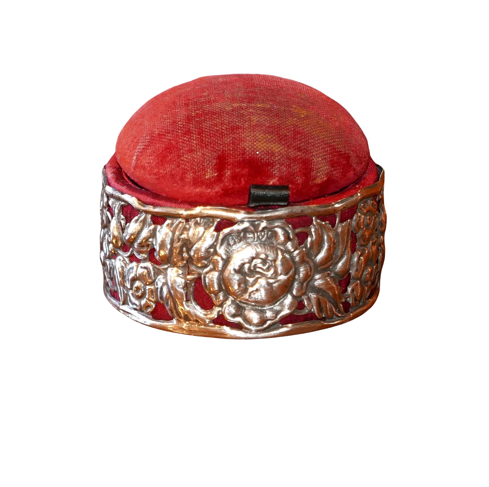 A delightful, useful trinket box with pin cushion lid from the esteemed James & William Deakin. Hallmarked at Chester in 1903 this is an insight into how silver was used to raise mundane everyday items into something of beauty without diminishing the functionality.