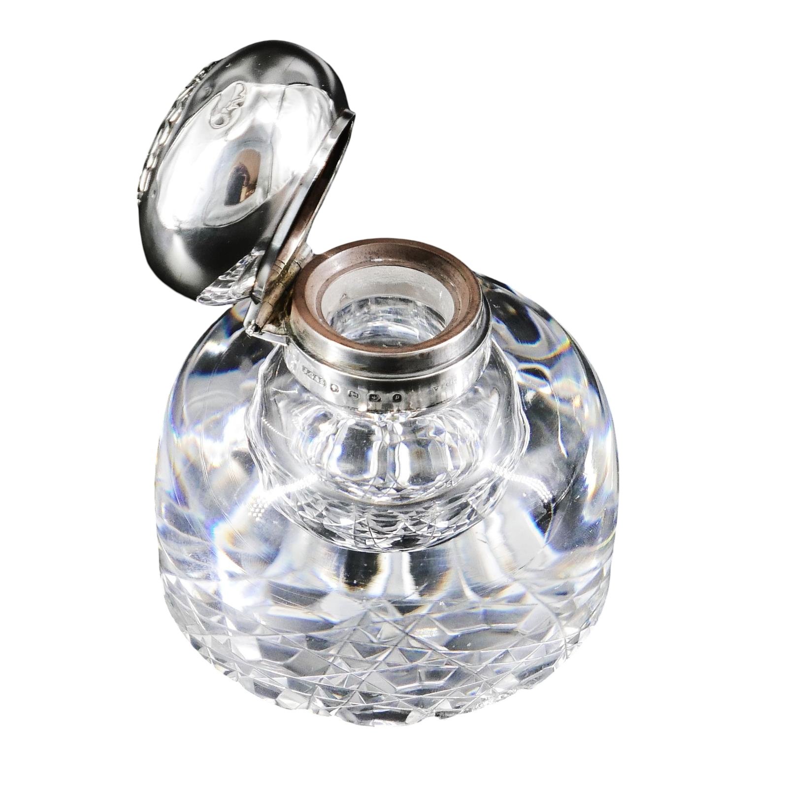 Silver Mounted Round, Hobnail Cut Base, Inkwell by John Grinsell Birmingham 1890