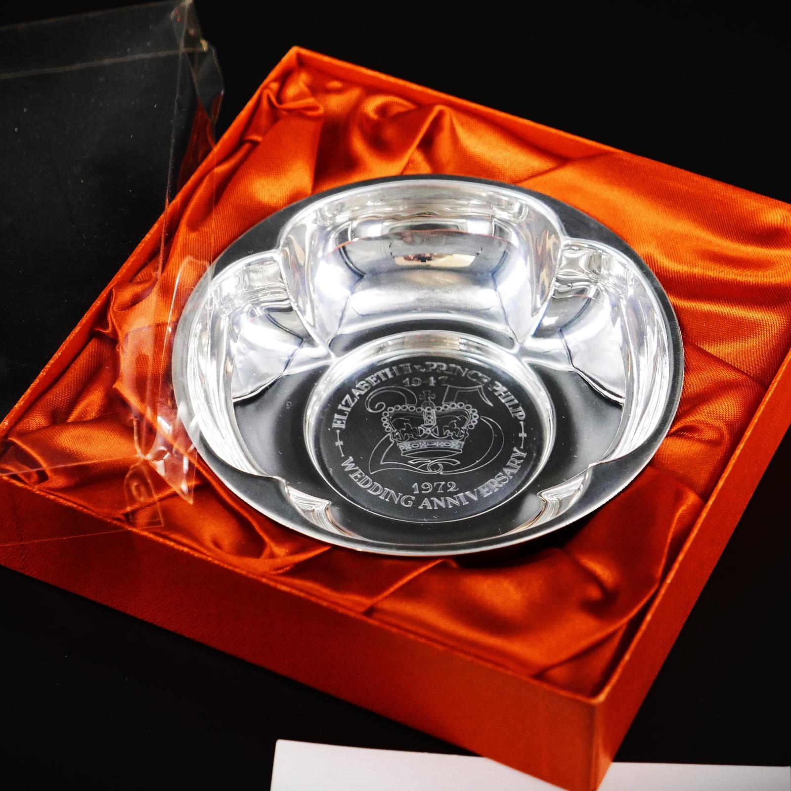 Vintage Elizabeth II Silver Wedding Hallmarked Silver Dish
